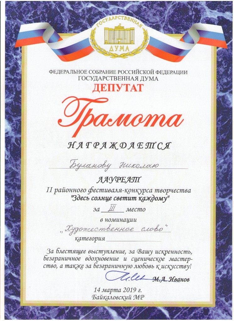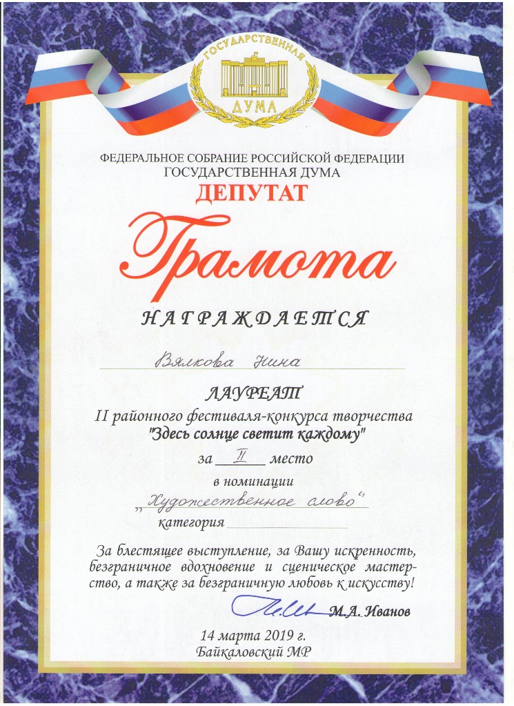 Фестиваль-конкурс "Здесь солнце светит каждому", 2019 г.